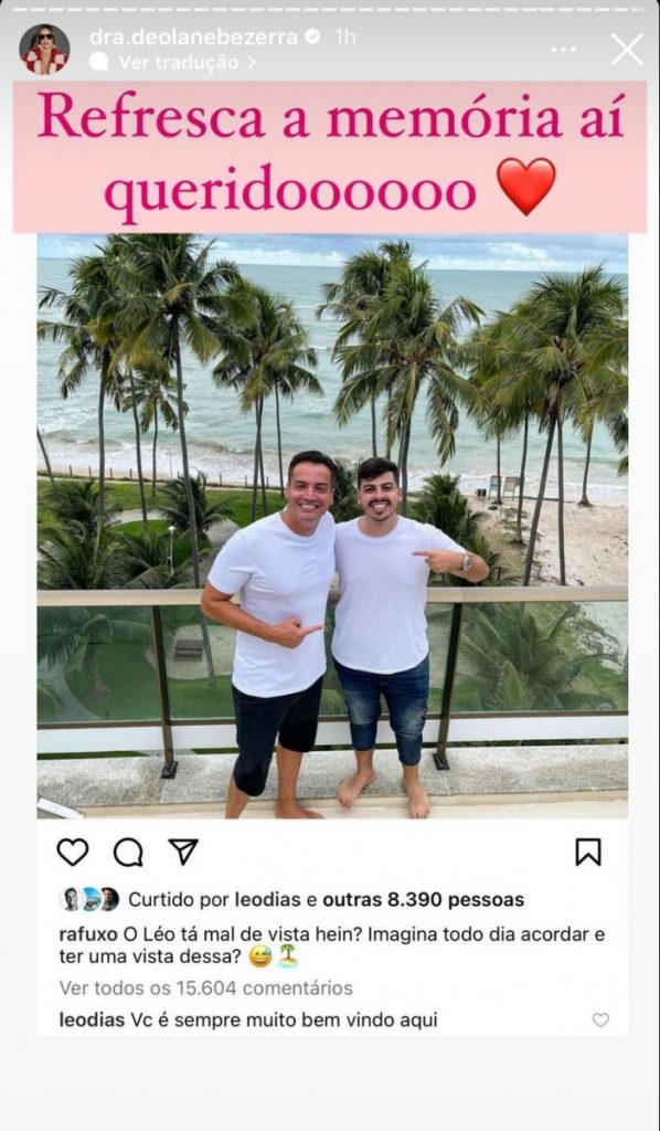 Logo em seguida a advogada ainda expôs em sua rede social, a foto de Léo Dias com um dos proprietários da empresa que está sendo investigada.