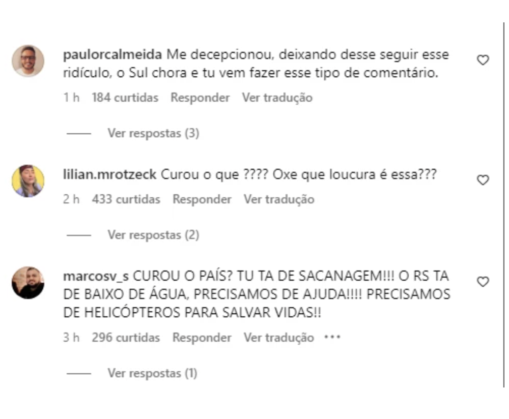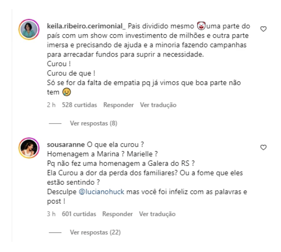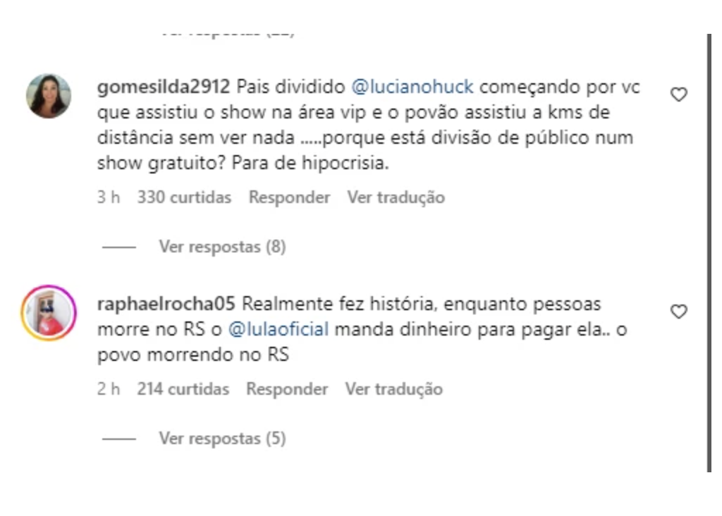 Em uma publicação no Instagram, Luciano Huck não poupou elogios à cantora, afirmando que ela “ajudou a curar um país dividido”. Uma declaração que, para muitos brasileiros, soou como uma afronta diante da situação crítica enfrentada por diversas regiões do Brasil.