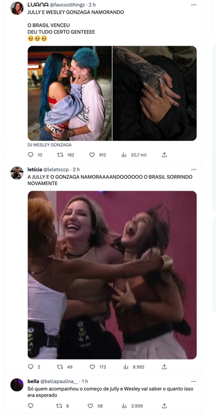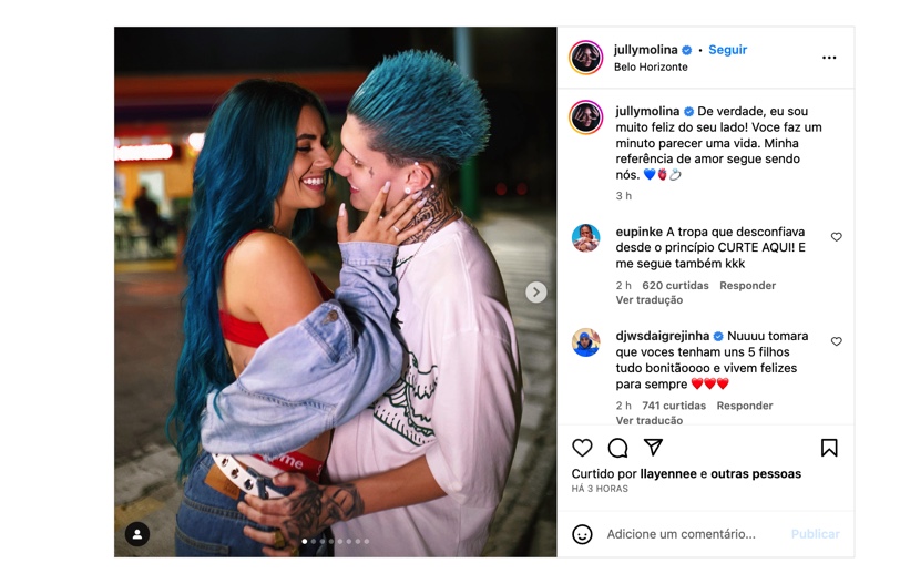 Brasil – No início da tarde desta quarta (14), o DJ Wesley Gonzaga e a youtuber Jully Molinna assumiram o namoro em seus perfils nas redes sociais.