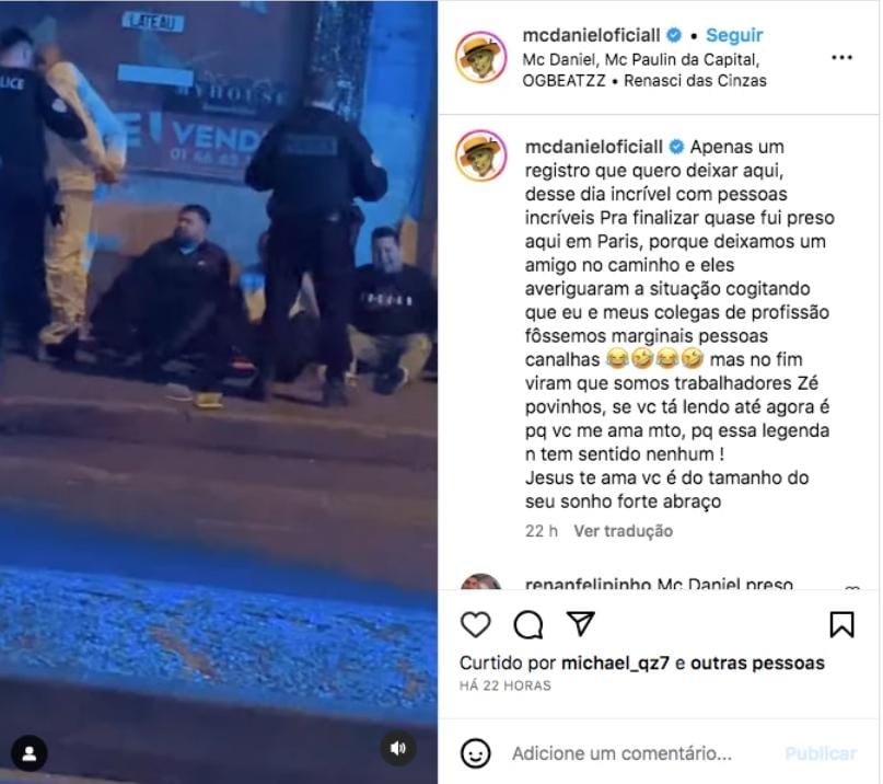 Funkeiro MC Daniel é abordado pela polícia em Paris
