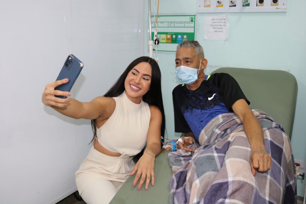 Isabelle Nogueira faz visita surpresa e leva alegria a pacientes com câncer na Fundação Cecon