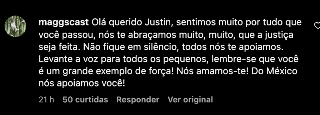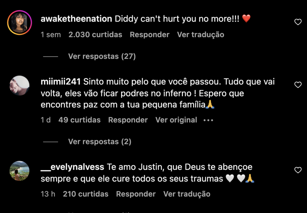 Os comentários de apoio a Bieber não se limitaram apenas a expressões de carinho. Muitos fãs compartilharam mensagens de superação e encorajamento, ressaltando a importância da saúde mental e da superação de traumas. Entre os apelos, alguns seguidores, preocupados com o bem-estar do cantor e de seu recém-nascido, pediram que Bieber mantivesse seu filho fora das redes sociais, buscando proteger a nova geração das incertezas que cercam a fama.