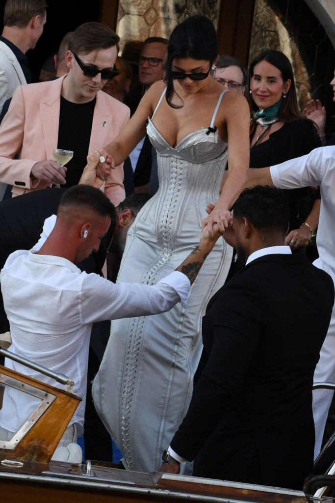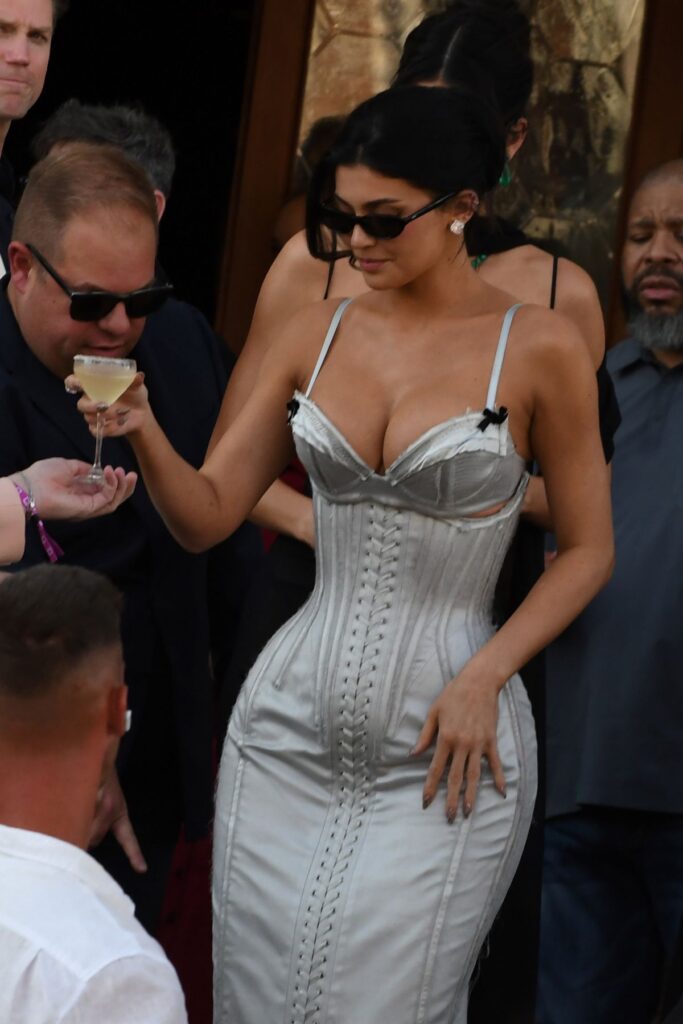 Kylie Jenner gera polêmica ao usar vestido claro e provocante no casamento de Jeff Bezos com Lauren Sánchez; veja