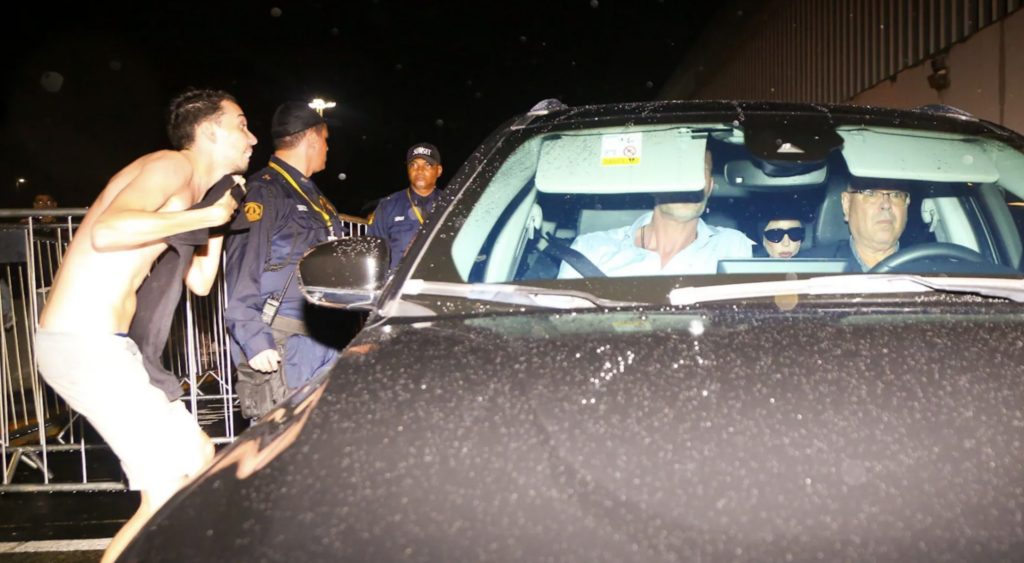 Um grupo de fãs passou a noite embaixo de chuva nos arredores do hotel, mas não conseguiu ver a artista, que desembarcou sob esquema de segurança e entrou por uma porta nos fundos.