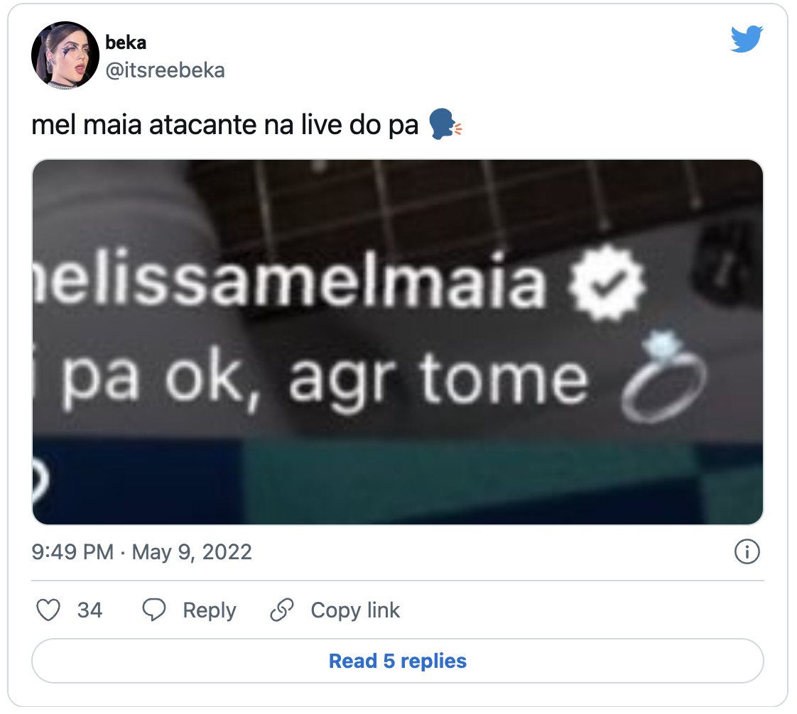 Brasil – Madrugada agitada para Mel Maia e Paulo André. Durante uma live do atleta na madrugada desta terça-feira (10), a atriz surpreendeu a todos ao deixar um comentário para PA, que tocava violão. “ai pa, ok, agora tome 💍”.