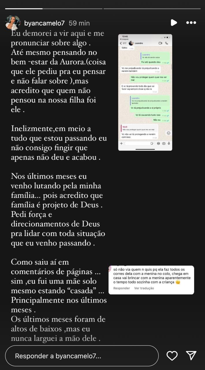 Byanca, que inclusive tem uma filha pequena com Leandro, já havia revelado nos seus stories que o rapaz saiu de casa para viver ao lado do seu novo amor, que seria uma mulher madura.