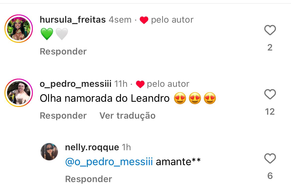 Lilian chegou a curtir o comentário onde Pedro a intitulou de namorada, dando mais confirmação aos boatos. Em seguida, ela bloqueou novos comentários no Instagram. Leandro, por sua vez, não se pronunciou sobre estes últimos acontecimentos.