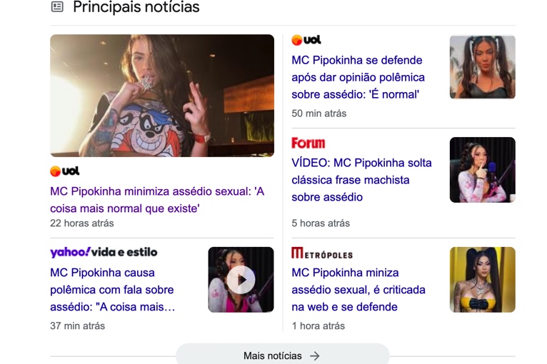 A fala de Pikokinha, no entanto, irritou usuários no twitter e também jornalistas da imprensa mainstream, que criticaram a fala da famosa. Confira manchetes e alguns comentários: