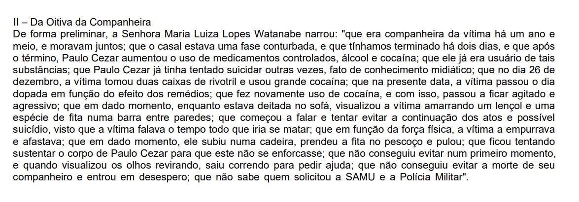 A ex-namorada, testemunha chave da ocorrência, prestou depoimento e, posteriormente, retornou ao apartamento acompanhada de um amigo, policiais, além de um primo e uma tia de PC Siqueira. Deixando o local por volta das 23h30, ela carregava consigo caixas contendo pertences do influenciador, sem se pronunciar diante da imprensa.