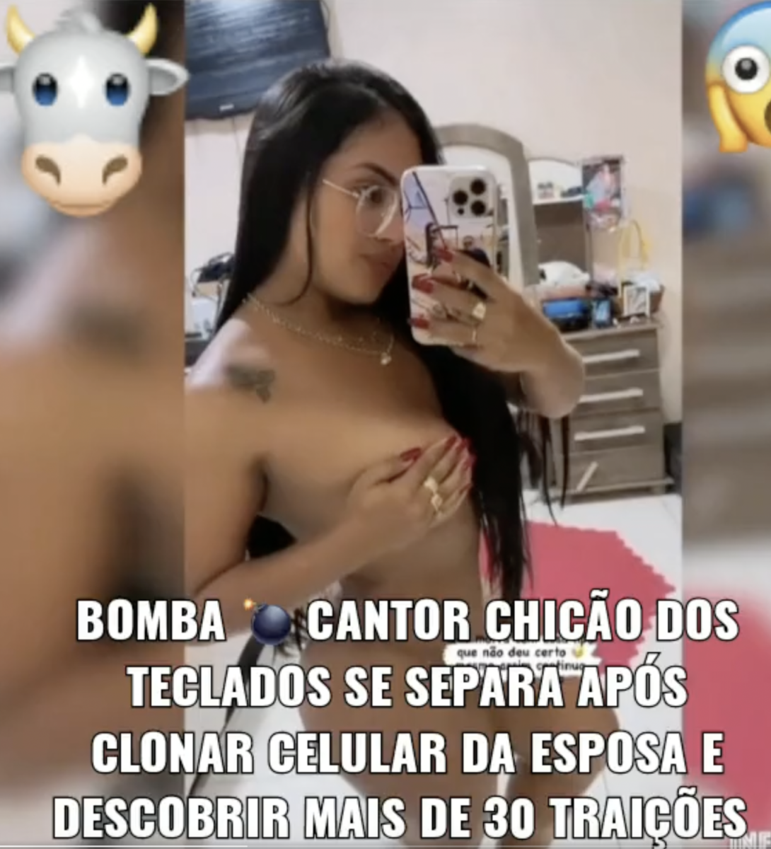 No entanto, internautas relataram que Chicão na verdade clonou o celular da companheira e descobriu mais de 30 ‘chifres’, além de fotos sensuais que supostamente ela mandava para outros.
