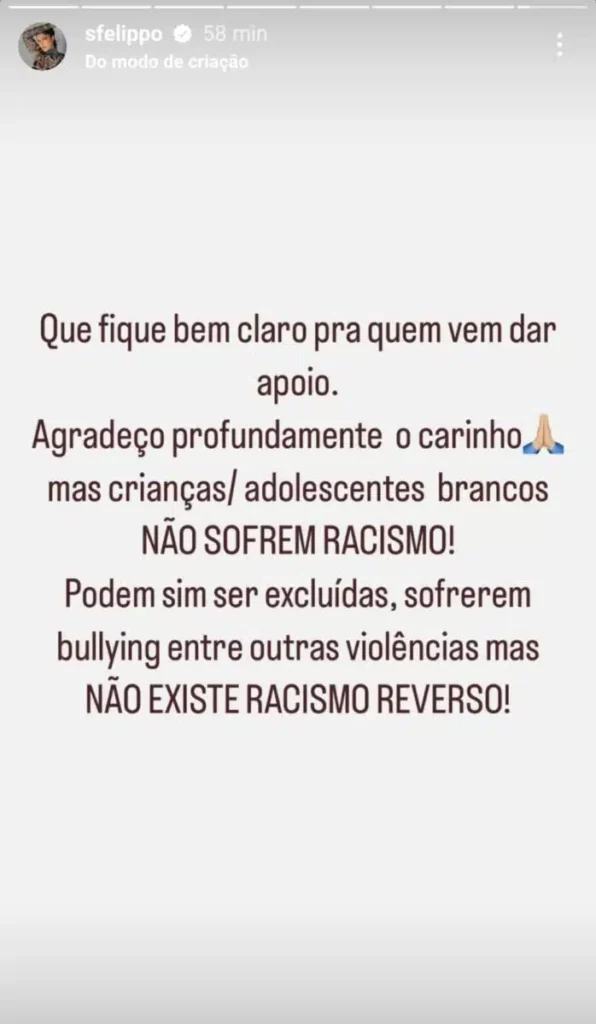 A atriz ressaltou ainda a importância de assegurar a segurança e a saúde mental não só de sua filha, mas também de outros alunos negros e não conformistas na escola. Para Samara, esse incidente não é um caso isolado, e ela espera que a instituição tome medidas enérgicas para combater o racismo.