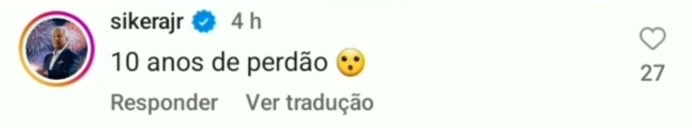 O comentário de Sikera Jr faz alusão a prisão do blogueiro Vitinho Cell em fevereiro deste ano, quando o influencer, João Victor Bezerra de Souza, foi preso em um estúdio de tatuagem após acusação por roubo de um celular e duas televisões.