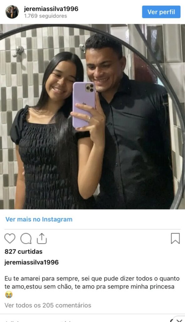 O noivo de Aclécia, Jeremias Silva, publicou uma mensagem no Instagram.