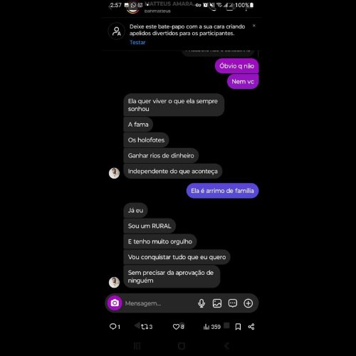 No entanto, ao ser questionado sobre amar Anna Julia, Matteus respondeu que “amor nem sempre é tudo”. A declaração gerou especulações entre os fãs, que interpretaram o comentário como uma sugestão de que ele não ama sua atual namorada. O vazamento causou burburinho nas redes sociais, com muitos acusando Matteus de desrespeitar tanto Isabelle quanto sua nova parceira.
