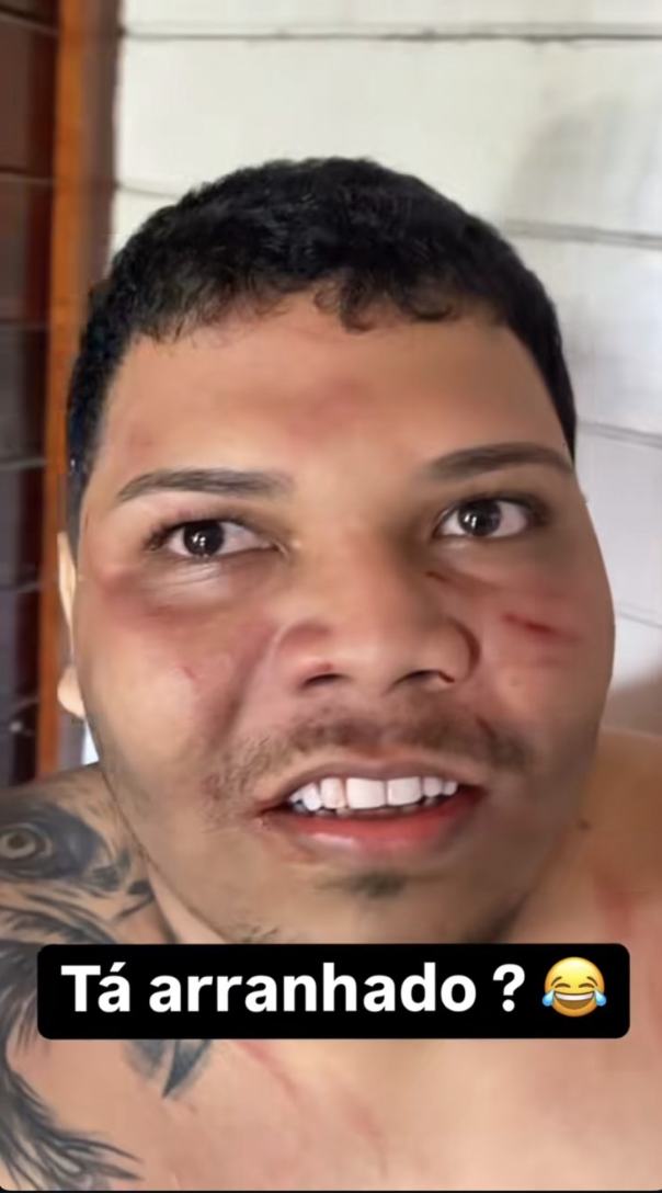 O influenciador exibiu seu rosto arranhado e disse que “não ficaria assim”. Ele exigiu a expulsão de Nutela mas como o projeto acabava no dia seguinte, houve a festa de despedida e tudo ficou bem.