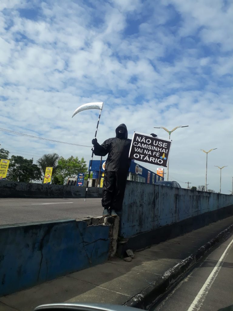 Manaus – Um foto inusitada tem viralizado nesta segunda-feira (30) nas redes sociais e mostra um homem fantasiado de “morte” no viaduto do Coroado, aconselhando homens solteiros e casados de Manaus. Peculiarmente, o conselho da morte constrasta com as estatísticas que mostram os índices da mortalidade masculina no Amazonas e no Brasil.