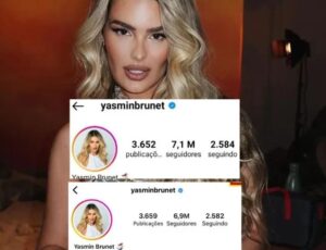 Brasil -A modelo Yasmin Brunet, participante do Big Brother Brasil 24, perdeu mais de 200 mil seguidores desde que explodiu…