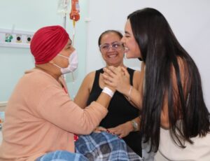Isabelle Nogueira faz visita surpresa e leva alegria a pacientes com câncer na Fundação Cecon