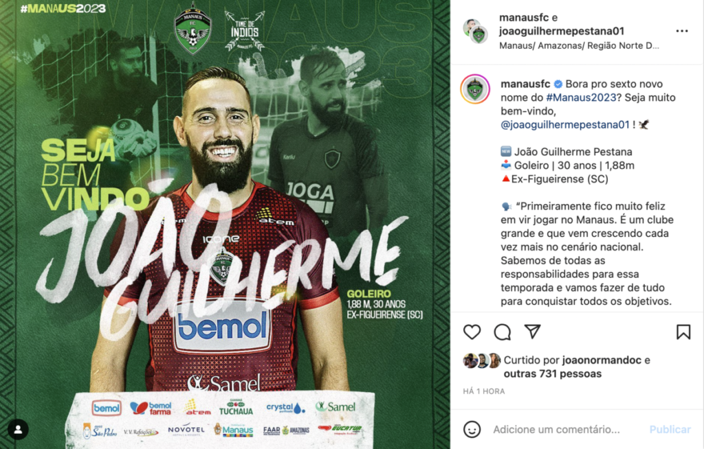 “O João é um goleiro bastante experiente, rodou em clubes de diferentes regiões do Brasil, então conhece bem o futebol nacional. É um atleta que, assim como o Reynaldo e o Pedro, deixa o Manaus bem tranquilo com a função nesse primeiro momento”, disse.