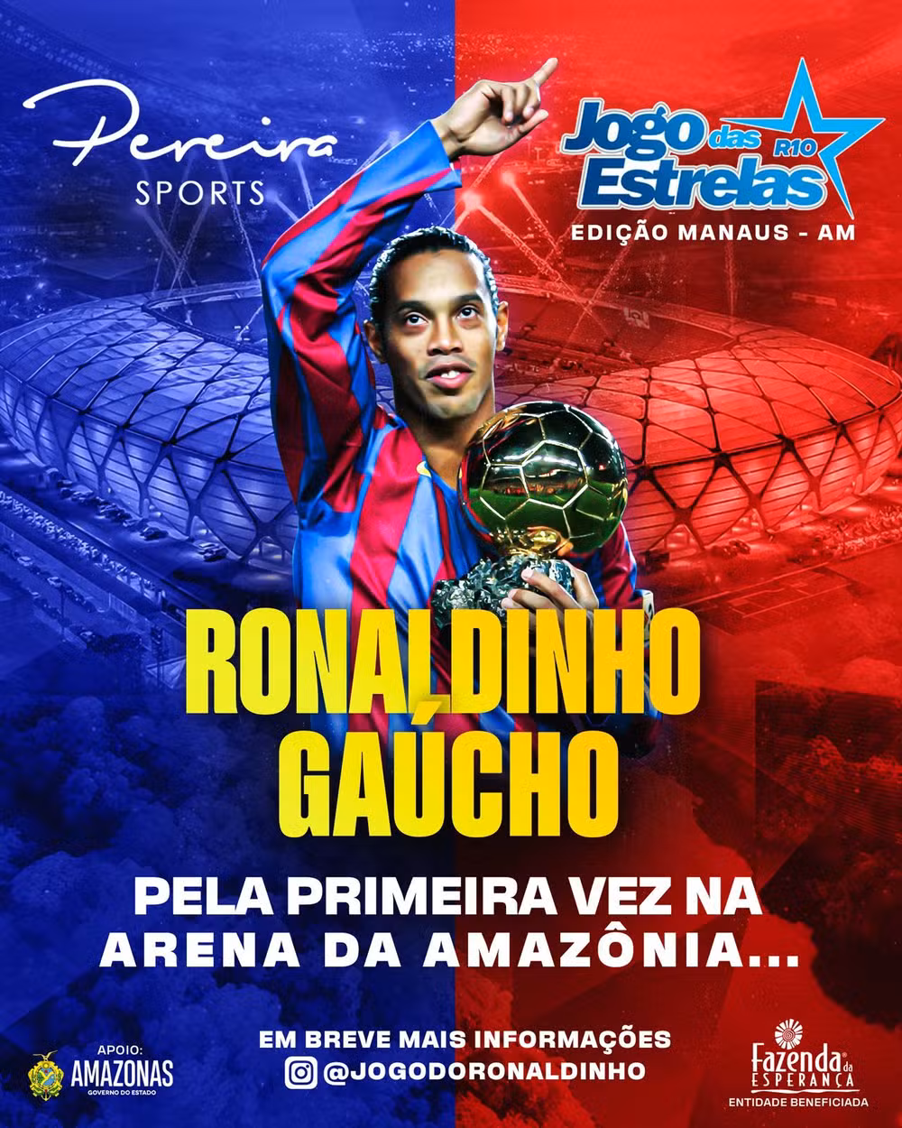 Com Ronaldinho Gaúcho, Arena da Amazônia vai receber Jogo das Estrelas em maio