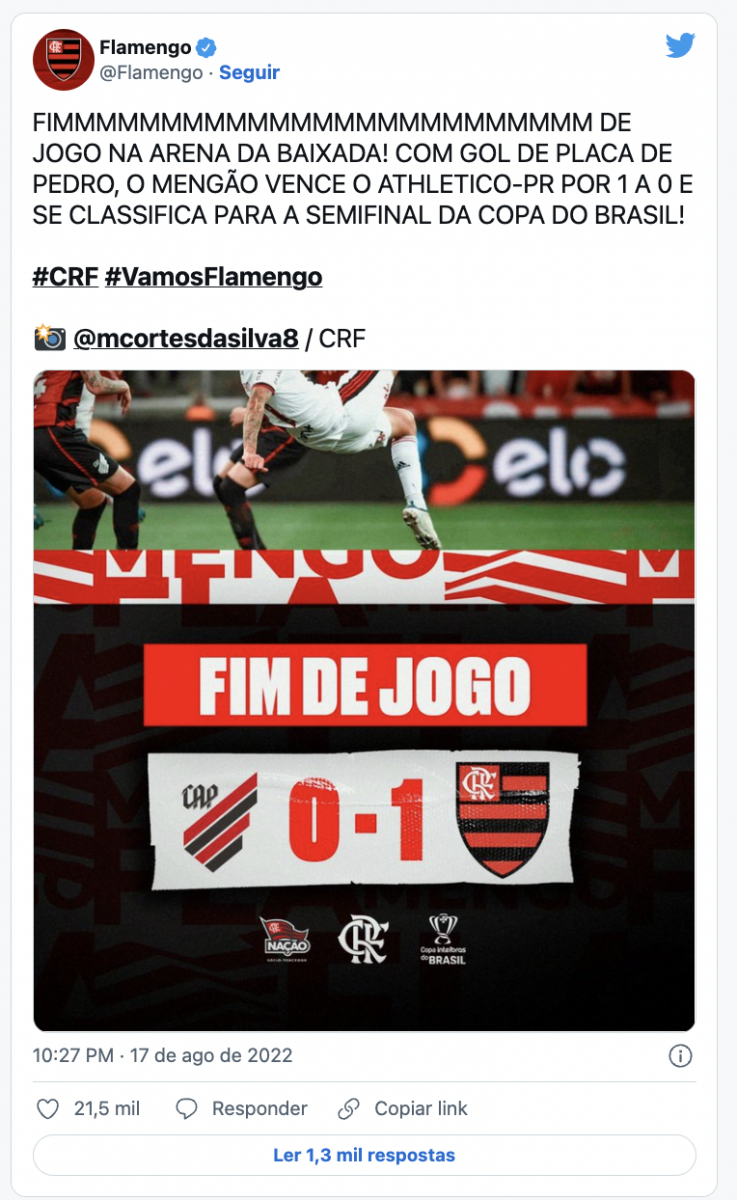 Brasil – Com um golaço de Pedro, o Flamengo foi até a Arena da Baixada, em Curitiba, e derrotou o Athletico-PR por 1 a 0, na noite desta quarta-feira (17), para se garantir nas semifinais da Copa do Brasil.