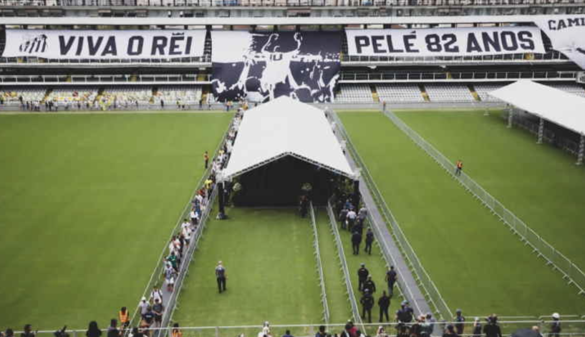 O corpo de Pelé, falecido na última quinta-feira (29), foi transportado do Hospital Israelita Albert Einstein, em São Paulo, à Vila Belmiro durante a madrugada, escoltado pela Polícia Militar e pelo Corpo de Bombeiros, chegando por volta das 3h40. O caixão está no centro do gramado do estádio onde o Atleta do Século atuou em 210 jogos e anotou 288 dos 1.091 gols que fez com a camisa do Peixe. O acesso do público ocorre pelos portões 2 e 3 (Rua Dom Pedro), enquanto o de autoridades se dá pelo portão 10 (Rua Princesa Isabel).