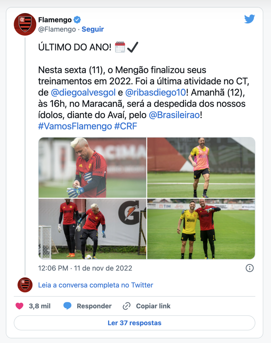 Diego Ribas chegou ao time da Gávea em 2016, e Diego Alves em 2017. Dentre os títulos colecionados pela dupla estão quatro Campeonatos Cariocas (2017, 2019, 2020 e 2021), dois Campeonatos Brasileiros (2019 e 2020), duas Libertadores (2019 e 2022) e uma Copa do Brasil (2022), além de uma Recopa Sul-Americana e duas Supercopas do Brasil. O meia irá se aposentar, enquanto o goleiro seguirá a carreira em outra equipe.