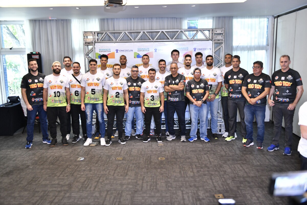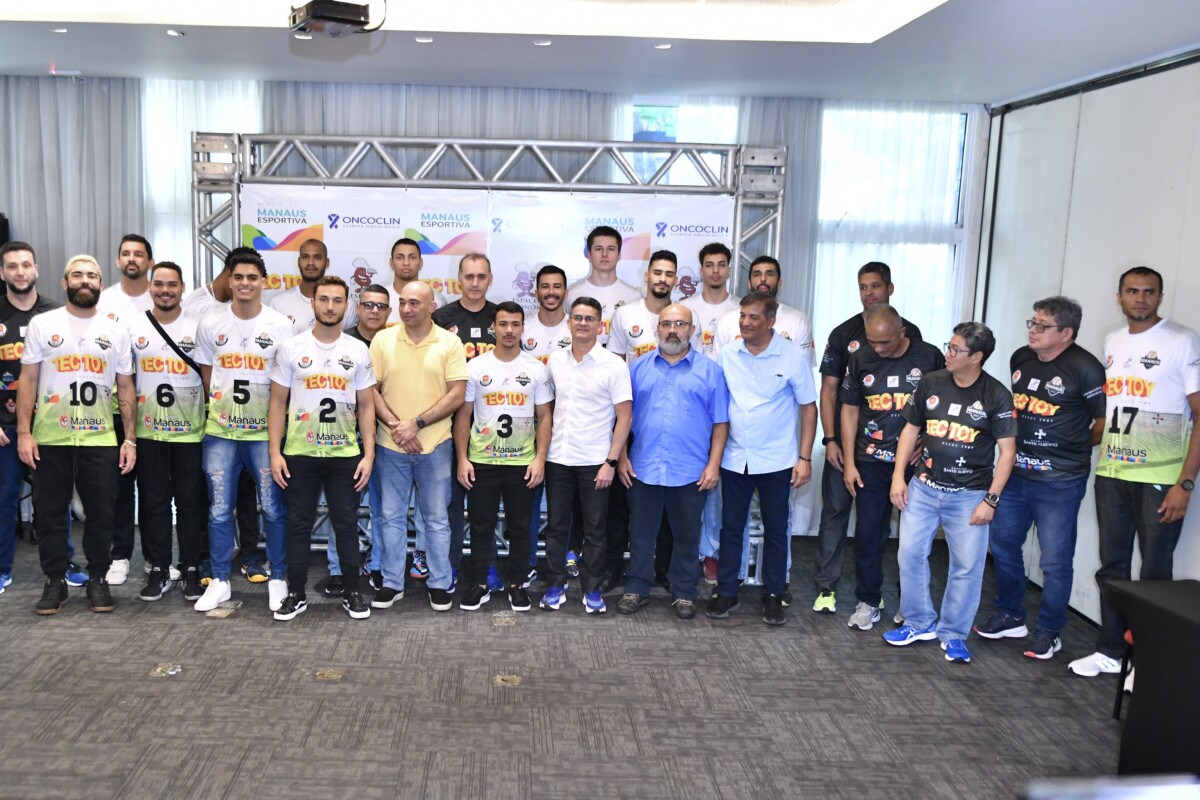 Manaus – O prefeito de Manaus, David Almeida, participou, ao lado do diretor-presidente da Fundação Manaus Esporte (FME), Aurilex Moreira, na tarde desta quarta-feira (18), da apresentação dos jogadores do Manaus Vôlei/TecToy, equipe que irá representar o Amazonas na Série B da Superliga de Vôlei Masculino, principal competição da modalidade no Brasil. A disputa começa neste sábado (21), e garante aos dois primeiros colocados o acesso para a Superliga A.