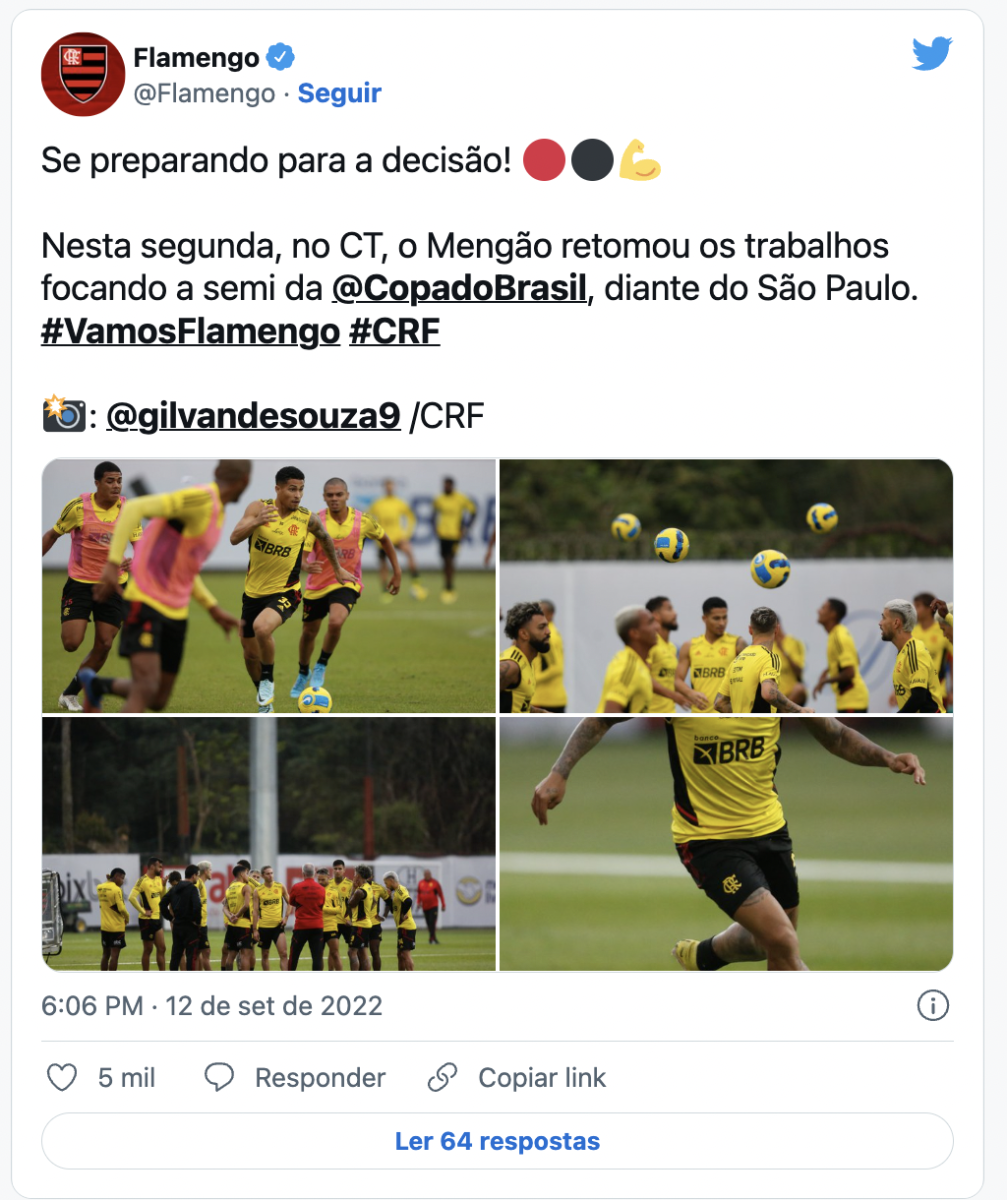 Mesmo com a boa vantagem construída no Morumbi, a expectativa é de que o técnico Dorival Júnior escale a equipe com o que tem de melhor: Santos; Rodinei, David Luiz, Léo Pereira e Filipe Luís; Thiago Maia, João Gomes, Everton Ribeiro e Arrascaeta; Pedro e Gabriel Barbosa.