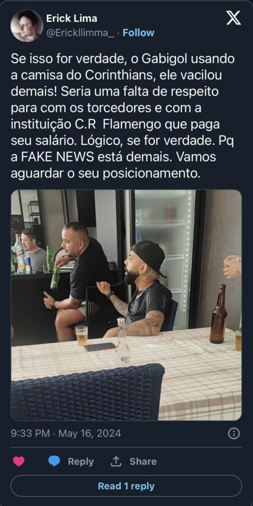 Brasil – Na noite desta quinta-feira, uma foto viralizou nas redes sociais, mostrando o atacante Gabriel Barbosa, do Flamengo, vestindo a camisa do Corinthians. A imagem provocou intenso debate entre os torcedores corinthianos e descontentamento por parte dos flamenguistas.