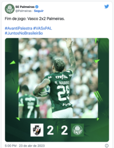 Brasil – Em partida muito movimentada no estádio do Maracanã, o Vasco chegou a abrir uma vantagem de dois gols, mas viu o Palmeiras se recuperar para fechar o placar com um empate de 2 a 2, na tarde deste domingo (23), em partida transmitida pela Rádio Nacional.