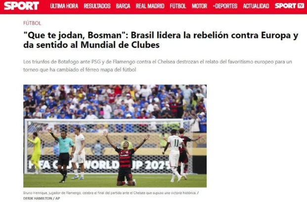 “Brasil lidera rebelião contra a Europa e dá sentido ao Mundial de Clubes. Vitórias do Botafogo contra o PSG e do Flamengo contra o Chelsea quebram a narrativa de favoritismo europeu para um torneio que mudou o férreo mapa do futebol”, diz o jornal Sport, da Espanha.