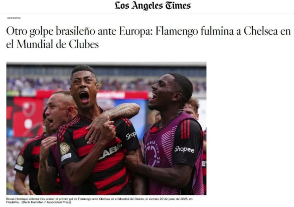 O jornal Los Angeles Times, dos EUA, chamou a vitória do Flamengo contra o Chelsea de “Mais um golpe brasileiro contra a Europa: Flamengo fulmina Chelsea por 3 a 1 no Mundial de Clubes”.