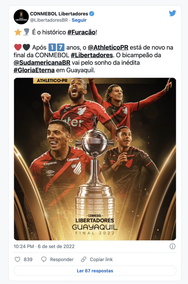 O Athletico frustrou o sonho palmeirense de repetir o São Paulo de Telê Santana, último clube a chegar a três decisões seguidas do torneio sul-americano, entre 1992 e 1994. Pode, ainda, tornar-se o primeiro campeão inédito desde o Atlético Nacional (Colômbia), em 2016, além de o 11º time brasileiro a levantar a taça mais importante do continente.