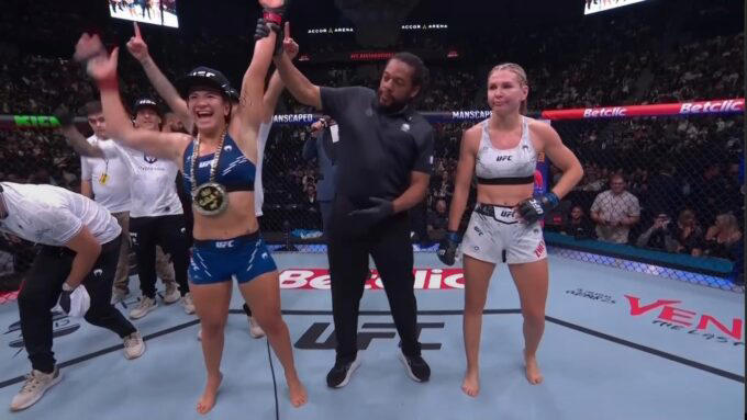Em seguida ela provocou sua rival: “Fiquei feliz que eles me deram um oponente com esse nível de experiência porque, desde que comecei no UFC, eles têm me dado muitas veteranas, com pelo menos cinco lutas no UFC. Então foi legal poder pegar uma lutadora que era, eu acho, um pouco menos desafiadora comparada ao resto, então eu pude me mostrar e realmente conseguir uma vitória de destaque em vez de vencer por decisão contra lutadoras mais difíceis e desafiadoras”.