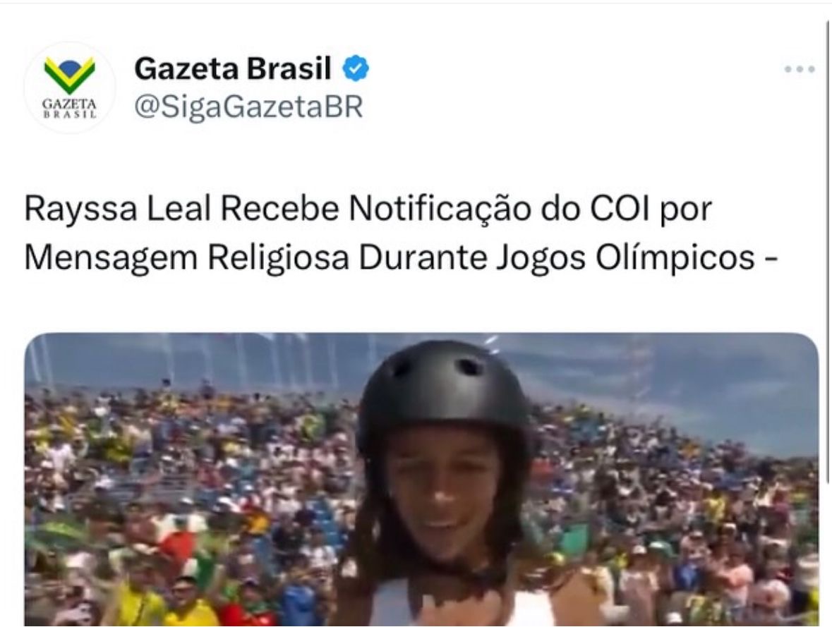 Como o COI pode justificar tal dualidade? Por que a fé de Rayssa Leal, a Fadinha, é silenciada enquanto a fé de bilhões de cristãos é ridicularizada em um evento global?