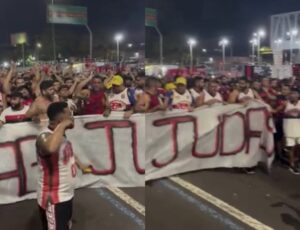 Flamenguistas protestam contra Gabigol em Manaus: ‘Não somos fãs de canalha!’; veja vídeo