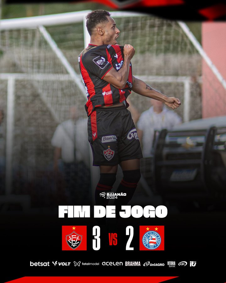 Vitória faz 3 a 2 de virada sobre Bahia em 1º jogo da final do Baianão