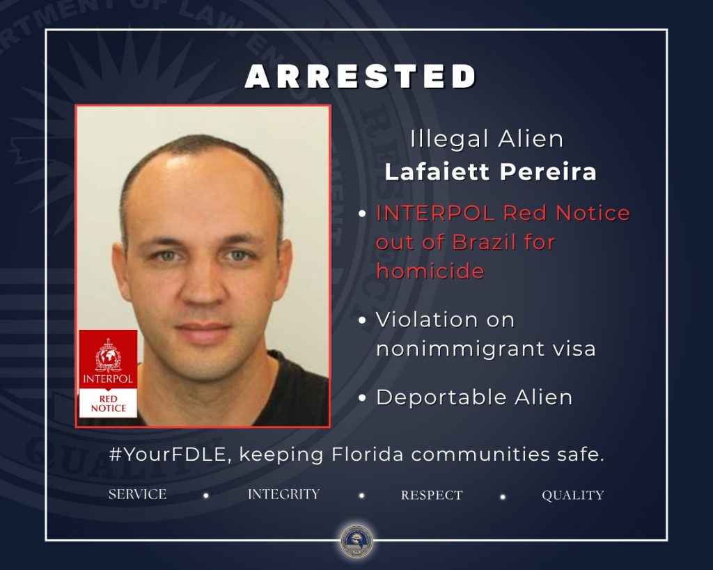 De acordo com o comunicado oficial divulgado nesta quinta-feira (17), Lafaiett Pereira estava sendo procurado no Brasil por homicídio, e sua prisão foi facilitada pela existência de um alerta vermelho da Interpol — mecanismo que solicita, globalmente, a detenção provisória de indivíduos procurados. Ele foi imediatamente detido pelas autoridades americanas.
