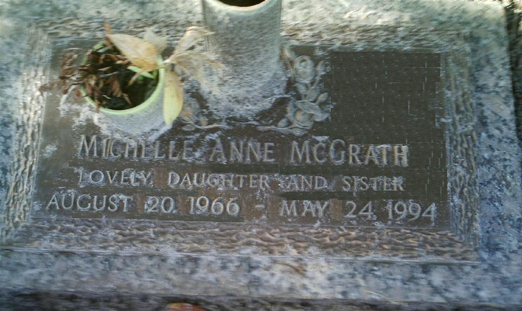 “Estamos privados da minha filha… para sempre”, disse o pai de Michelle, Douglas McGrath, ao apresentar ao tribunal uma foto do túmulo da filha.