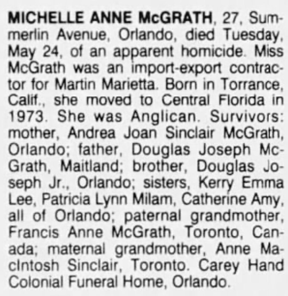 O caso de Michelle McGrath continua sendo um dos crimes mais lembrados de Orlando — não apenas pela brutalidade do ato, mas pela luz que a vítima irradiava em vida.
