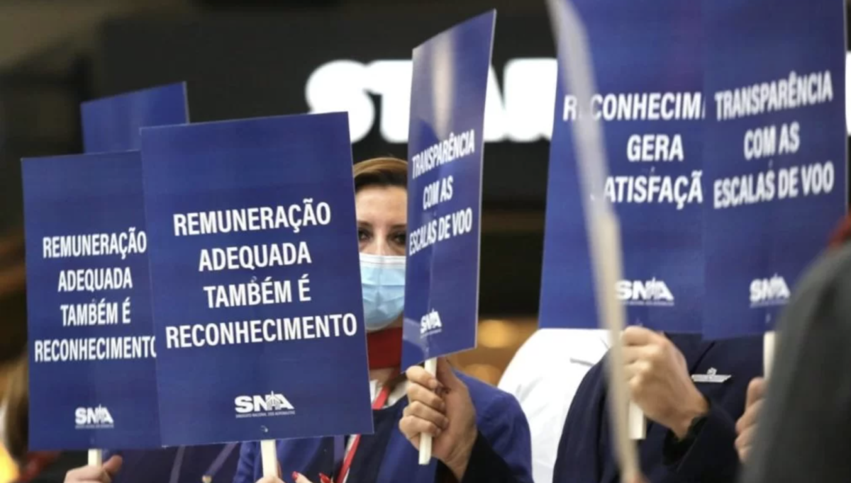 No aeroporto de Congonhas, em São Paulo, houve oito atrasos e seis cancelamentos no início da manhã. Pilotos, copilotos e comissários fizeram protesto nos corredores do terminal – eles levantaram placas com reivindicações por reajuste salarial.