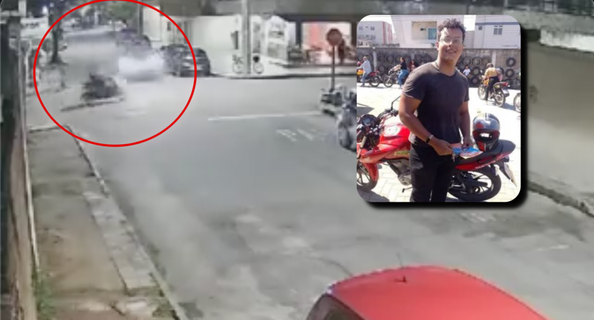 Nas imagens, é possível notar que o jovem estava trafegando em sua motocicleta quando foi atingido por um carro de luxo, em um cruzamento. O impacto da batida foi tão forte que Arthur foi arremessado a metros de distância.