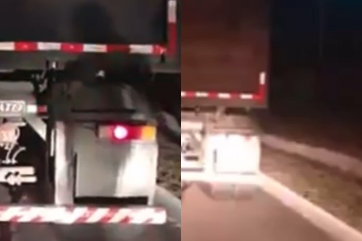 Chocante: motoqueiro m0rre e fica com c0rpo pendur4do em caminhão após acidente; veja vídeo