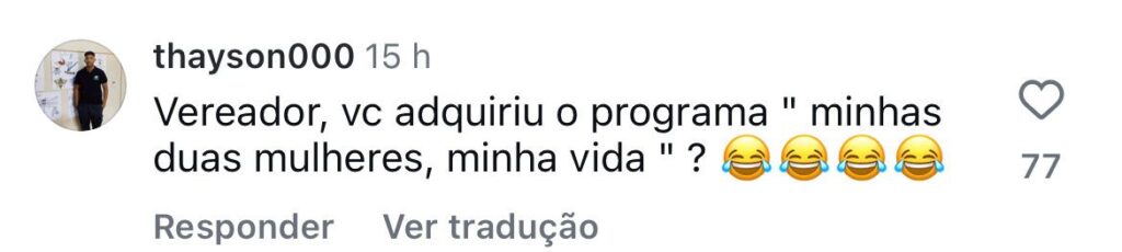 Nas redes sociais do vereador, internautas afirmam que a mulher agredida no vídeo seria amante do parlamentar. Alguns comentários aconselham Adriana a se valorizar, e outros dizem que a mulher “bateu na amante, mas continua com o alecrim dourado”.