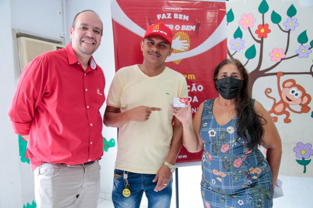 Superintendente Comercial da Atem, Alexandre Ferreira, entrega prêmio a um dos ganhadores da campanha Faz Bem Fazer o Bem, ano passado, e para a representante do Educandário Gustavo Capanema.