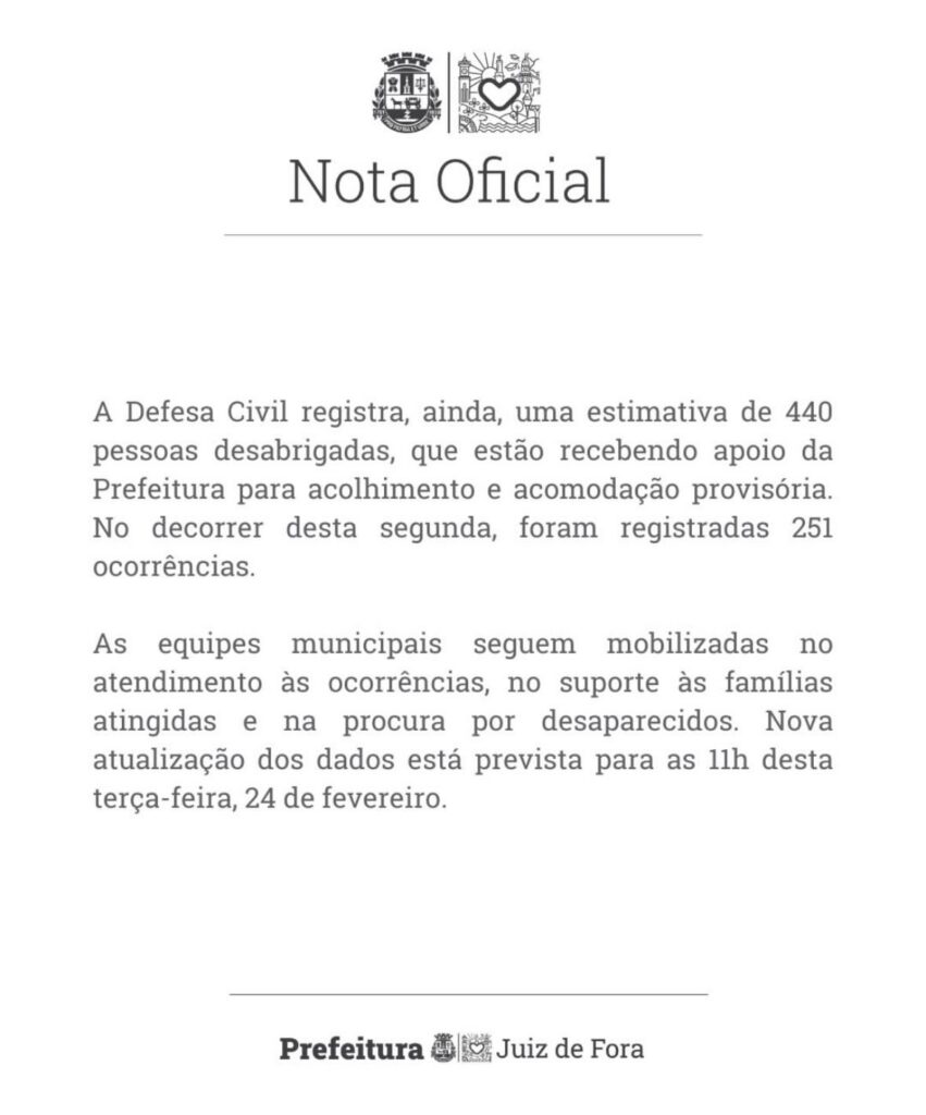Cerca de 440 pessoas estão desabrigadas, e o município decretou estado de calamidade pública e luto oficial de três dias após a tragédia.