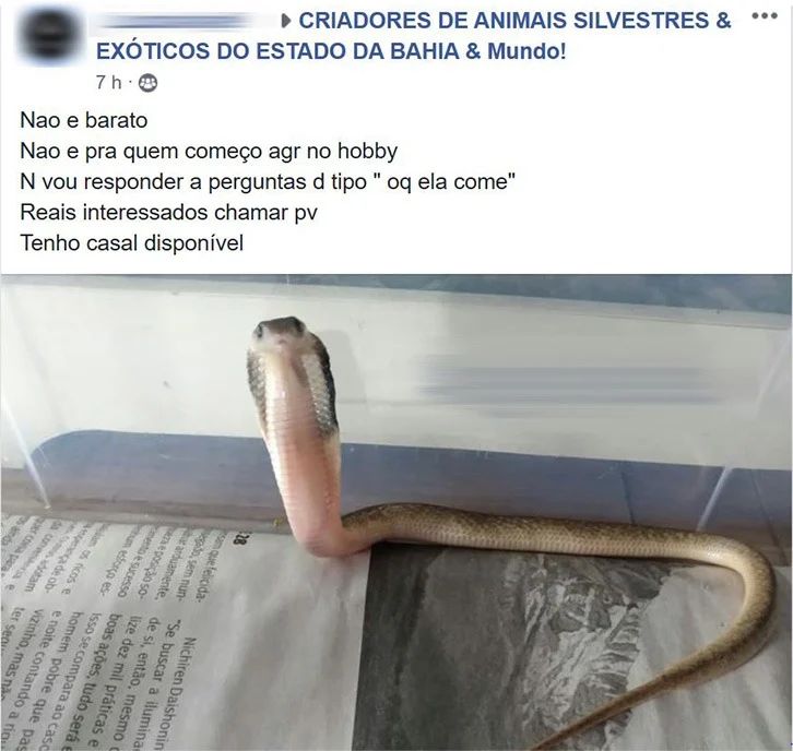 O Facebook foi procurado no início da tarde de segunda-feira (4/7) para se manifestar sobre o achado. Em nota, a rede social assinalou: “Nossas políticas não permitem conteúdo sobre compra, venda, comércio, doação ou oferta de espécies em vida selvagem”.