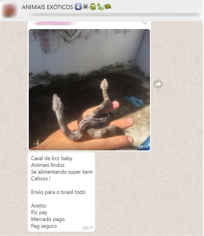 A plataforma permitiu anúncios, por exemplo, da venda de cobras-do-milho e cobras píton, consideradas exóticas no país. Essas serpentes podem causar grave desequilíbrio ambiental, uma vez que não têm predadores naturais por aqui.
