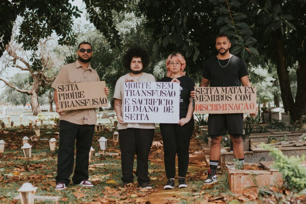A manifestação aconteceu no cemitério de Taguatinga, no Campo da Esperança, no bairro Campo da Esperança, em Brasília. “Perdi o convívio com todos da religião, pessoas que me viram nascer e crescer e eram meus amigos, e perdi o contato com minha mãe, pois os familiares também são orientados a evitar e ignorar quem saiu da religião, como uma maneira de fazer a pessoa voltar. Tive que reconstruir meu ciclo social do zero, mas ainda sofro os efeitos emocionais da morte social que me causaram”, denuncia a ativista.